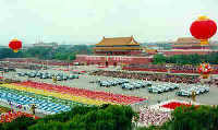 The grand of Tian’anmen Gate (Heavenly Peace Gate) is a national symbol with the Great Hall of the People on the western side and the Museum of the Chinese Revolution and the Museum of Chinese History to its east and west.