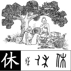 The resemblance between a pictographic character and its object helps learners remember the Chinese characters. Each pictographic character in this column is presented with pictures and detailed explanations. For instance, in 休 xiū to rest, the radical on the left, 亻means "a person", and the part on the right, 木, means wood or tree, so the meaning comes from the idea "a person is leaning against a tree to have a rest."